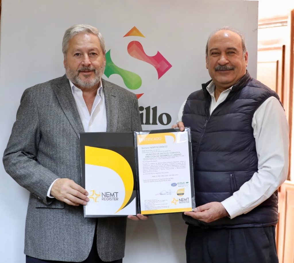 El alcalde José María Fraustro Siller recibió la Recertificación de Calidad en el Servicio de trámites en asentamientos humanos, desarrollo urbano y construcción, por parte de la empresa NEMT REGISTER, tras demostrar que sus procesos cumplen con la norma ISO 9001:2015.
