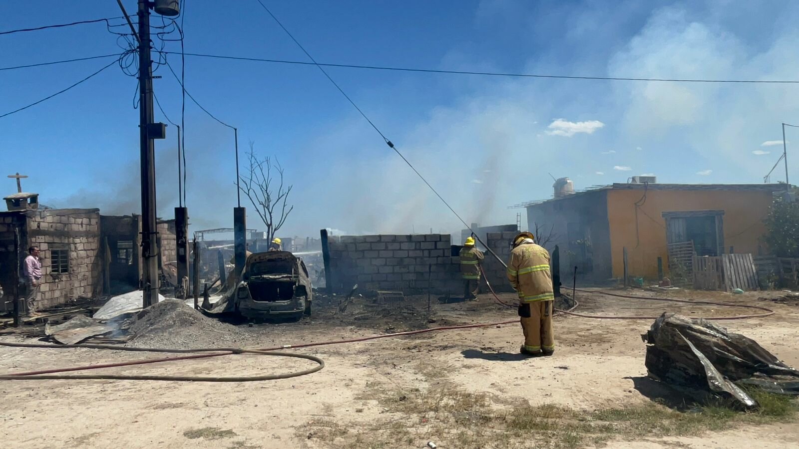 La tarde de este jueves, alrededor de las 13:30 horas, un incendio devastó tres viviendas en la colonia Atenas II de Sabinas, Coahuila. El siniestro ocurrió en la calle Copérnico, donde María de los Ángeles Leyva Mata, una mujer de la tercera edad, perdió su hogar en pleno Día del Abuelo.
