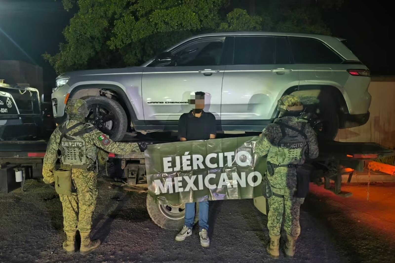 La IV Zona Militar informó que en el sitio se localizó una camioneta Jeep Grand Cherokee 2023, color plata, con placas sobrepuestas y con reporte de robo en Estados Unidos. El vehículo fue trasladado para su análisis pericial y la integración de la carpeta de investigación.