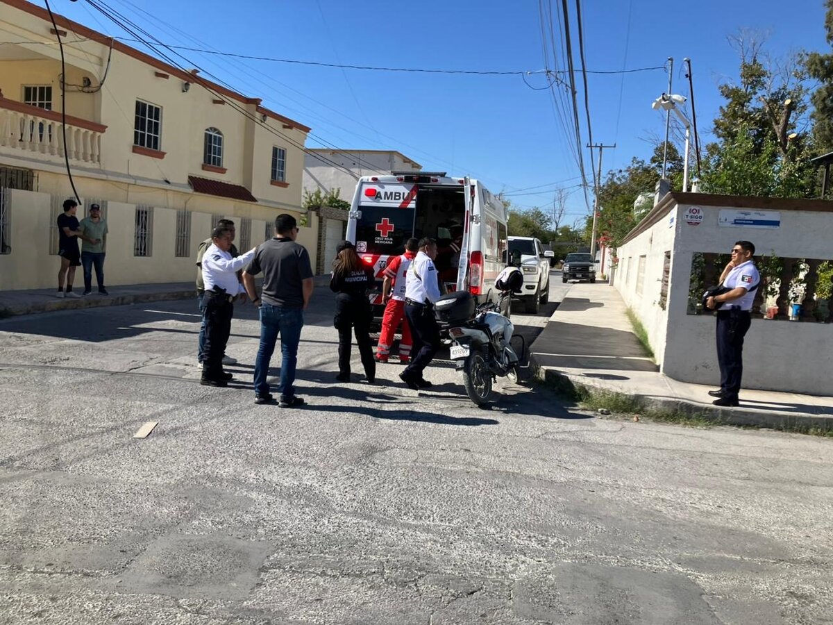 El percance ocurrió alrededor de las 14:00 horas, en el cruce de las calles Cárdenas y Montecarlo, cuando Jesús Guadalupe González, de 32 años, se desplazaba a bordo de una motocicleta Itálica modelo 2023, color blanca.