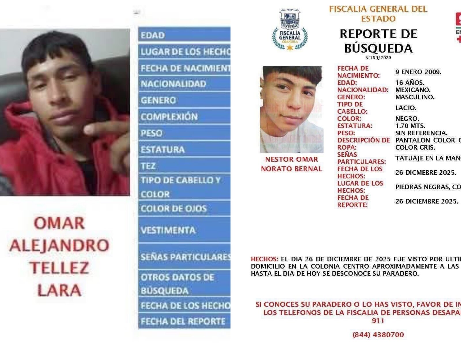 El primer caso correspondió a un menor de edad, identificado como Néstor Omar Norato Bernal, de 16 años, quien había sido reportado como no localizado desde el pasado 26 de diciembre, luego de que se perdiera contacto con él en la zona centro de la ciudad. Tras las indagatorias realizadas por el área especializada en personas desaparecidas, se logró ubicar al adolescente en un domicilio de Ciudad Acuña. De acuerdo con la información recabada, el menor se encontraba en compañía de amigos y amigas, sin que existiera indicio alguno de que fuera víctima de un delito. Posteriormente, el joven estableció comunicación directa con sus familiares, a quienes les informó que se encontraba en buen estado de salud y que regresaría a su hogar por cuenta propia.