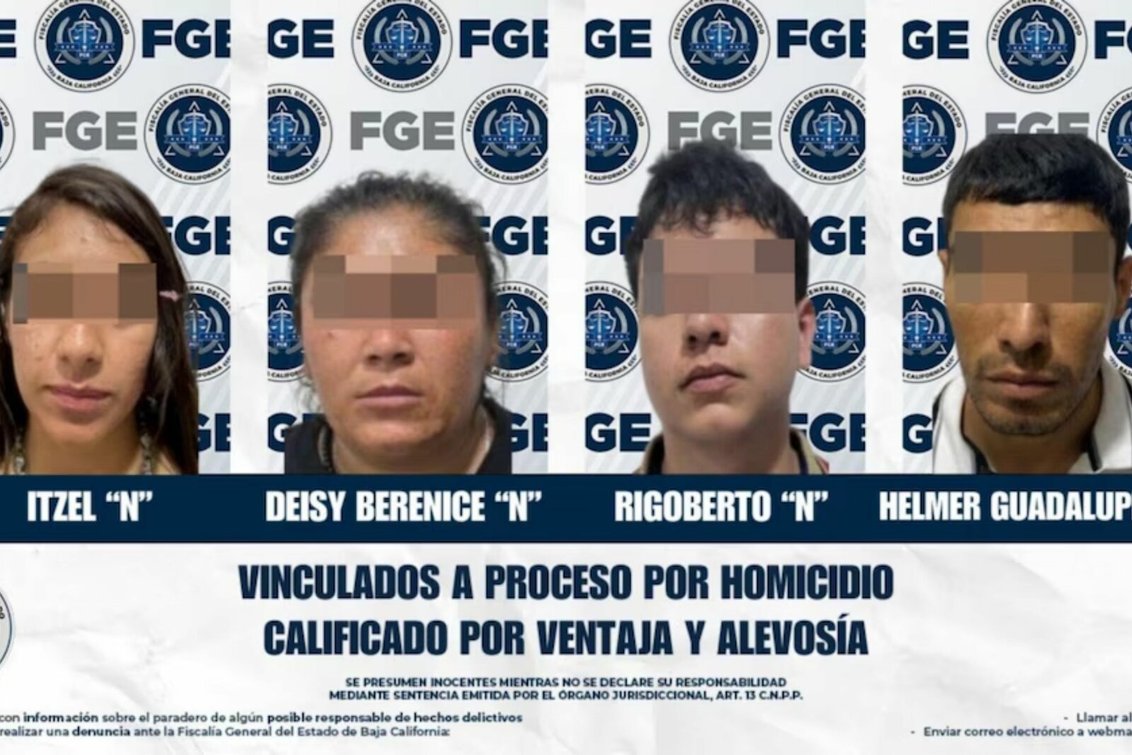 Tras el homicidio, elementos de la Policía Municipal de Tijuana desplegaron un operativo inmediato que resultó en la detención de cuatro personas, entre ellas dos mujeres y dos hombres, identificados como Itzel “N”, Deisy Berenice “N”, Rigoberto “N” y Helmer Guadalupe “N”.