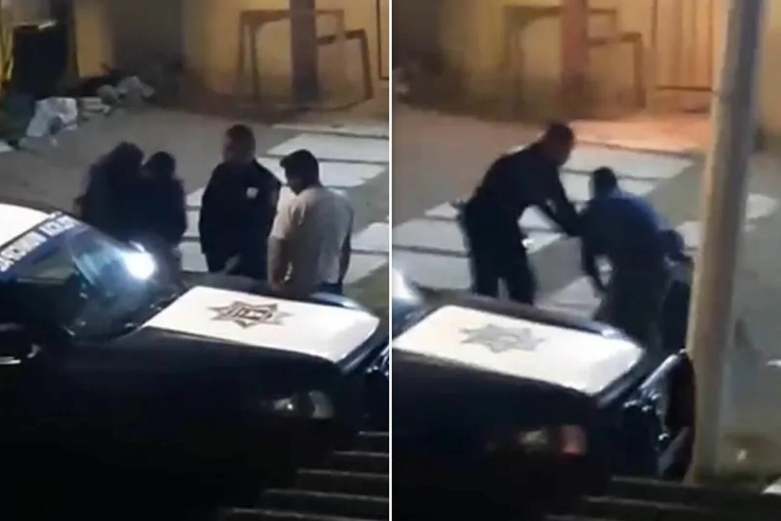Vecinos alertaron al 911 y grabaron videos del incidente, en los que se observa a los tres agentes en aparente estado inconveniente, portando uniforme oficial y con actitud errática.