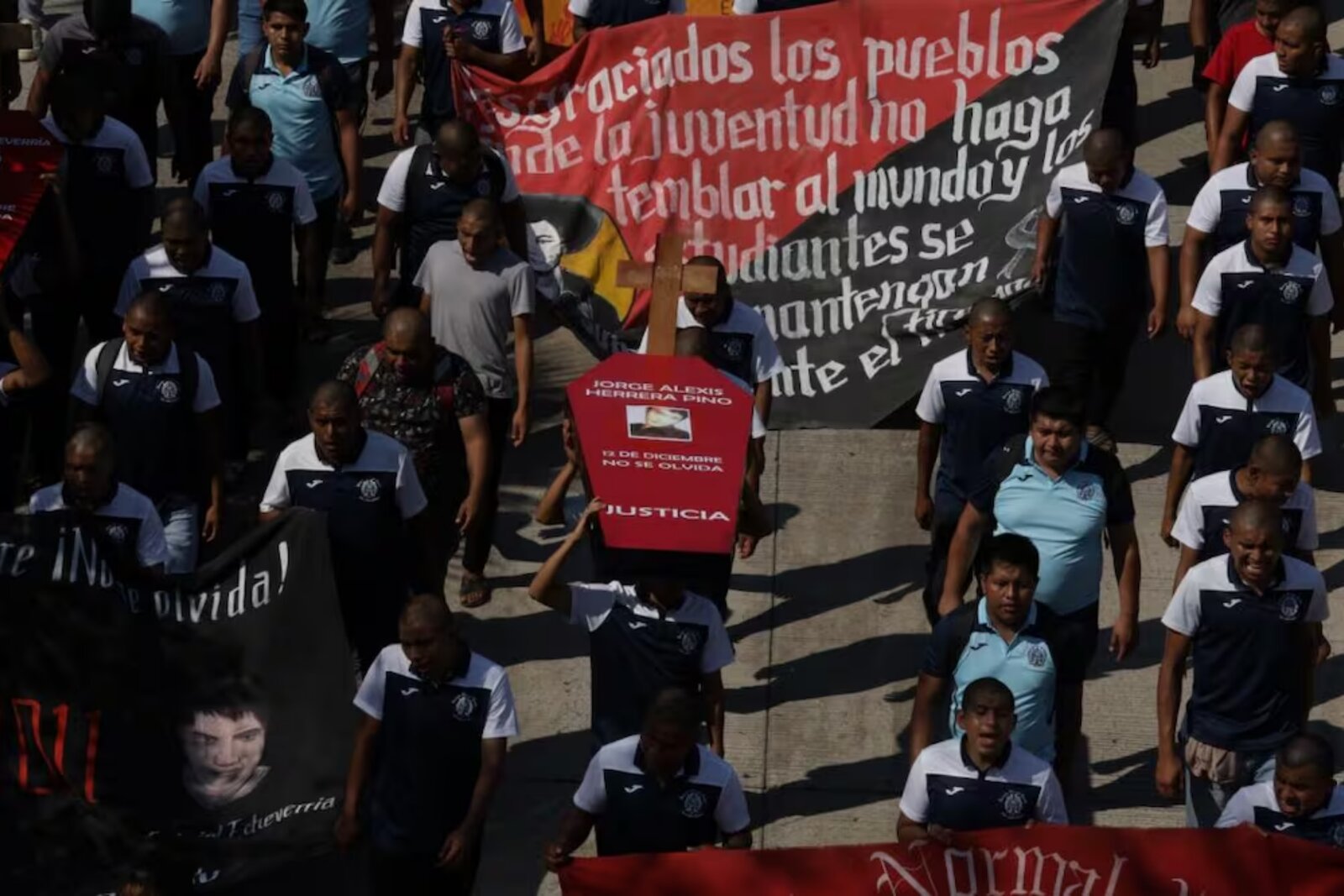 Estudiantes de la Normal Rural de Ayotzinapa, padres y madres de los 43 desaparecidos y organizaciones sociales marcharon al mediodía de este viernes en Chilpancingo, Guerrero, para exigir el fin de la impunidad por los asesinatos de Alexis Herrera Pino y Gabriel Echeverría de Jesús, así como por la desaparición de los normalistas ocurrida en Iguala en 2014.