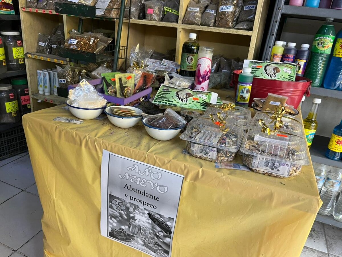 Los centros botánicos mantienen una venta constante de amuletos, perfumes rituales, semillas de la abundancia, baños de abrecaminos y palo santo, artículos que refuerzan la intención de bienestar y prosperidad.