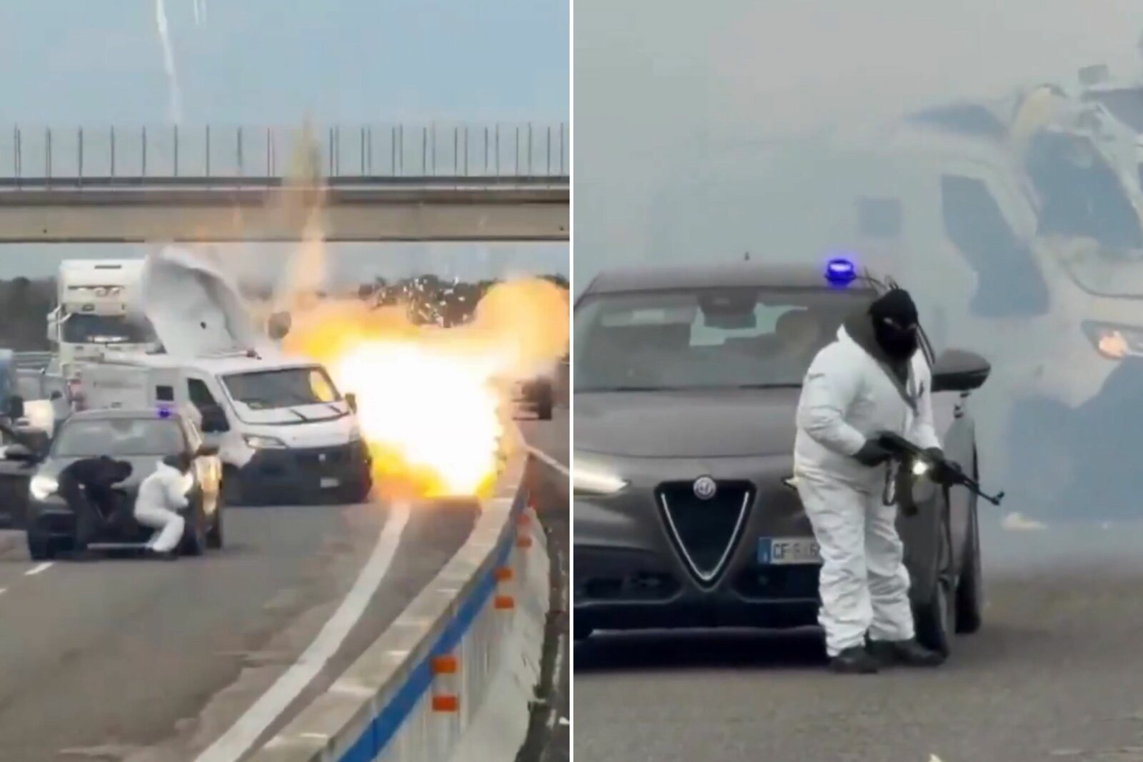 Asalto de película en Italia: explosivos, metralletas y fuego en plena carretera