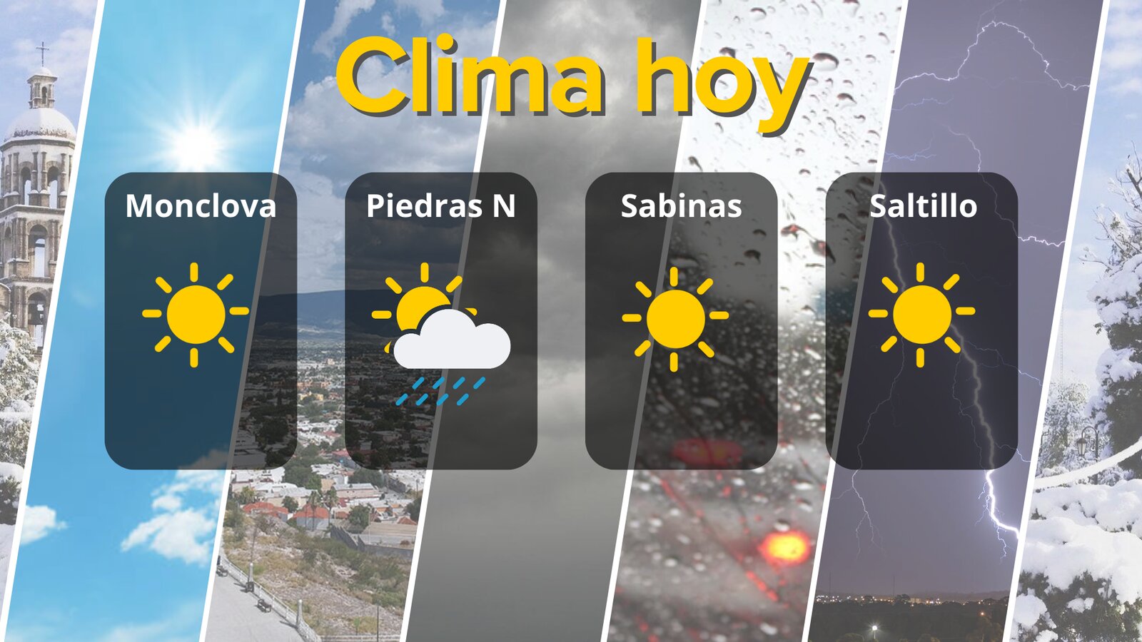 Hoy, 11 de marzo, las principales ciudades de Coahuila presentan condiciones climáticas variadas: Monclova y Sabinas con sol intenso y vientos fuertes, Piedras Negras con lluvia débil y Saltillo con temperaturas moderadas. La información meteorológica, proporcionada por estaciones locales y nacionales, destaca la presencia de vientos que alcanzan hasta 66 km/h, afectando la sensación térmica y la movilidad en la región.