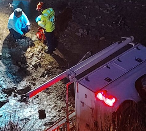 Al arribar al lugar, los rescatistas localizaron una camioneta oficial de la CFE que había caído a un barranco de aproximadamente 25 metros de profundidad, lo que generó una intensa movilización de auxilio.