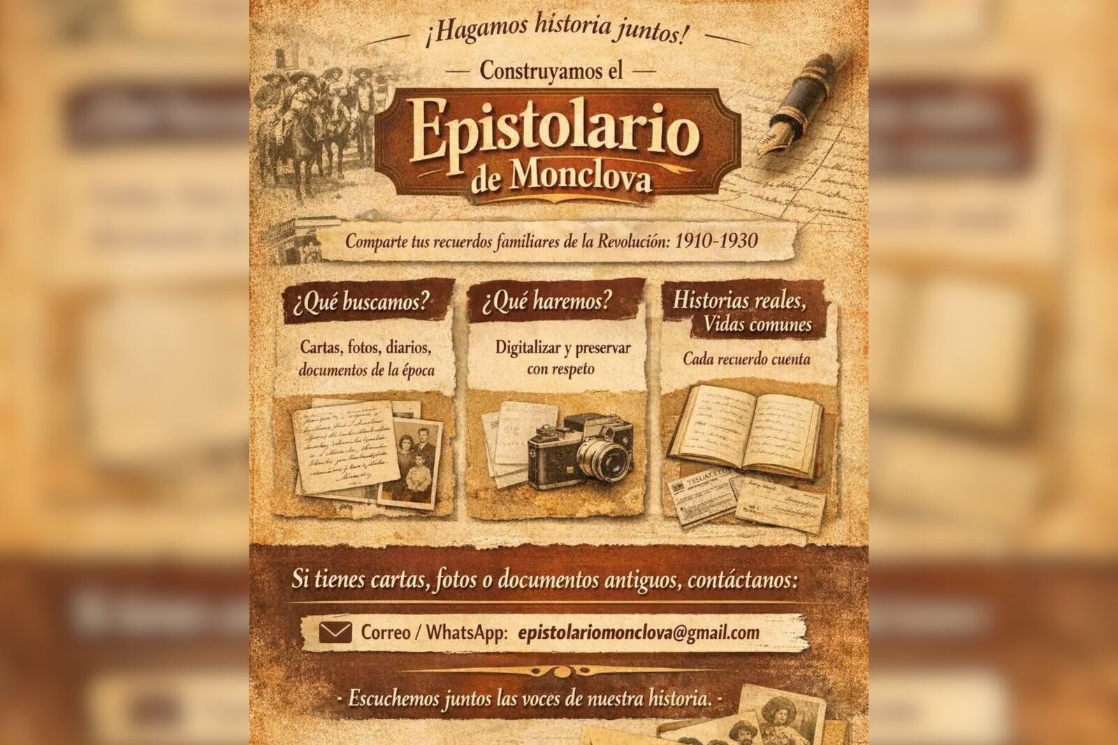 Un grupo de historiadores de Monclova invita a la comunidad a participar en la creación del primer Epistolario de Monclova, un archivo comunitario que recopilará cartas, fotografías y documentos familiares relacionados con la Revolución Mexicana y los años posteriores.