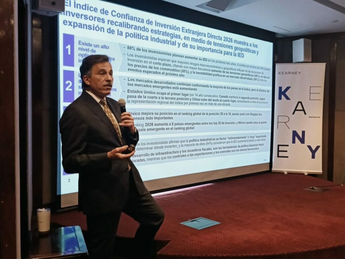 El país mexicano registró un notable avance en el Índice de Confianza de Inversión Extranjera Directa (IED) 2026 de Kearney, pasando del lugar 25 en 2025 al 19, destacando como uno de los mercados emergentes más atractivos a nivel mundial.