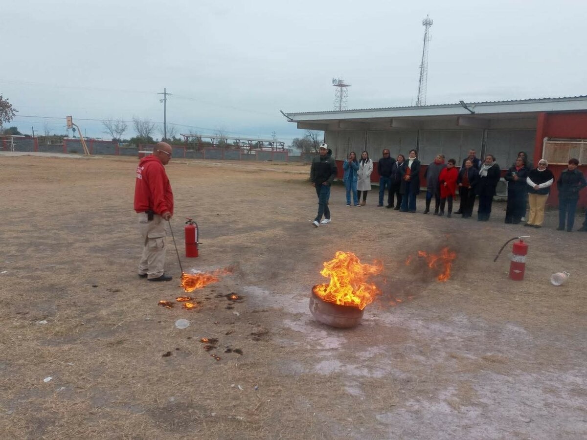 Personal de Protección Civil y Bomberos visitó la Escuela Secundaria General Barroterán para impartir pláticas teóricas y prácticas sobre el uso y manejo de extintores, con el objetivo de fortalecer la cultura de prevención en los planteles educativos.