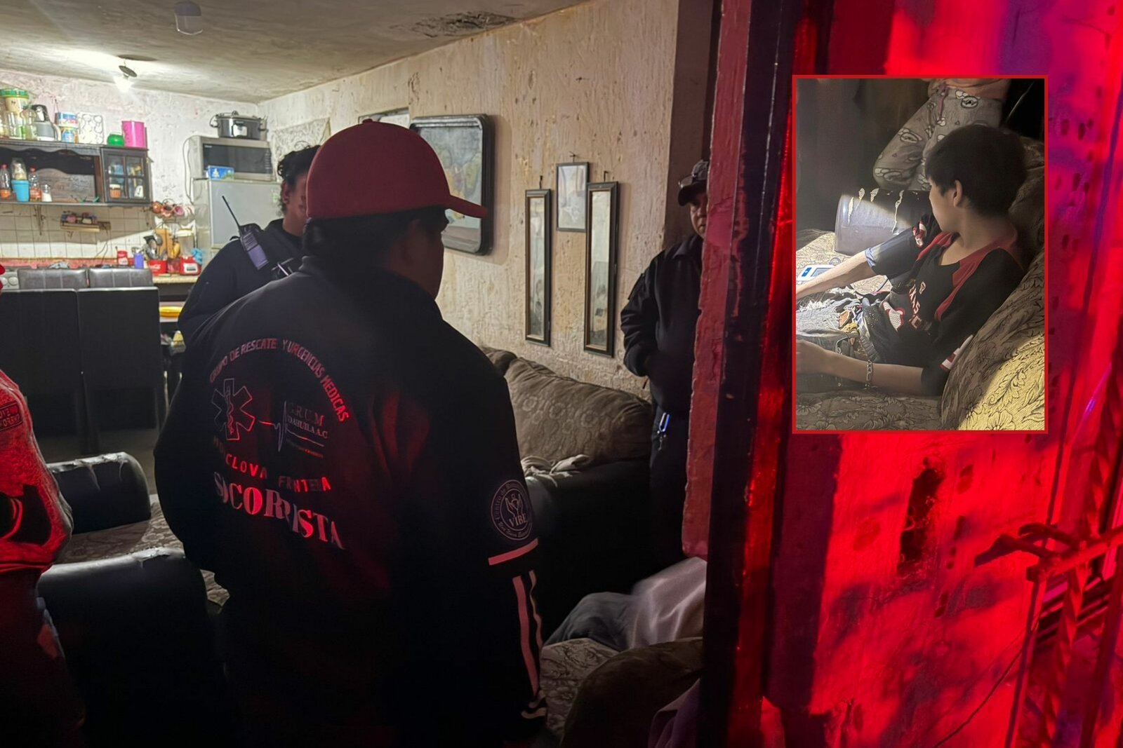 En la escena localizaron al joven identificado como Lester, de 17 años, quien presentaba una lesión leve en el cuello tras colocarse un cable, presuntamente bajo efectos y presión derivados de problemas de adicción a sustancias ilícitas.