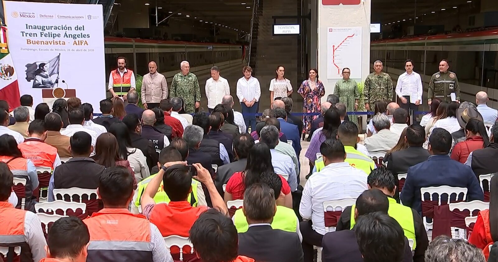 La presidenta Claudia Sheinbaum Pardo inauguró este 26 de abril el Tren “Felipe Ángeles”, que conecta Buenavista con el Aeropuerto Internacional Felipe Ángeles (AIFA), tras un retraso en su apertura programada inicialmente para Semana Santa.